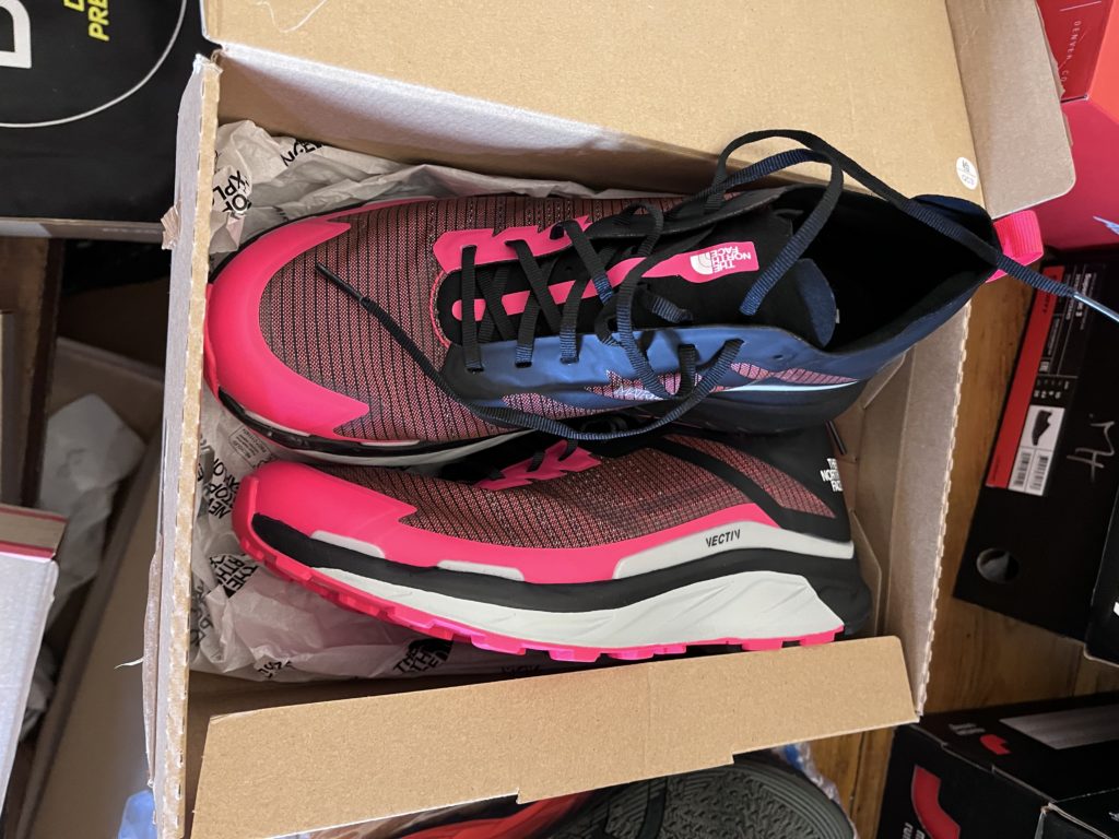 A l’aide d’un(e) partenaire, nous enfilons les différentes paires à tester dans la journée, dans la limite de 10 par personne, au delà le jugement devient compliqué avec la fatigue. Le partenaire prend des notes sur notre ressenti et nous apporte les paires au fur et à mesure, il indique aussi l’ordre dans lequel nous les avons passé afin de les reconnaitre sur le terrain ensuite.