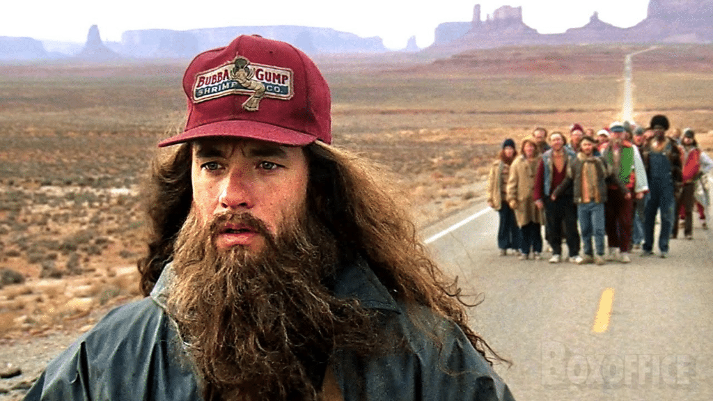 Il ressemble comme deux gouttes d’eau à Forrest Gump quand il fait son périple de course à pied à travers les USA. Barbe et cheveux longs, casquette verte sur la tête.